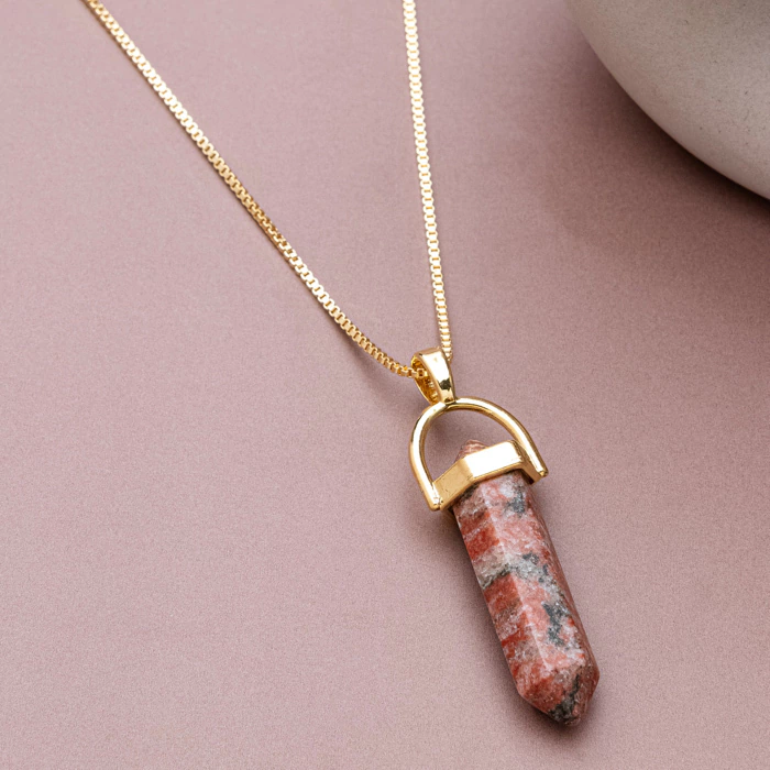 Colar com banho de ouro 18K e pingente formato pêndulo em pedra natural jade, corrente veneziana com 40cm símbolo de estabilidade e conexão com a natureza. Uma escolha elegante para pessoas que desejam transmitir segurança, serenidade e autenticidade.